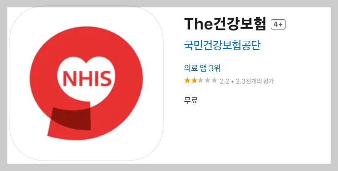 - 위에 버튼을 눌러 "The 건강보험" 앱을 설치합니다.