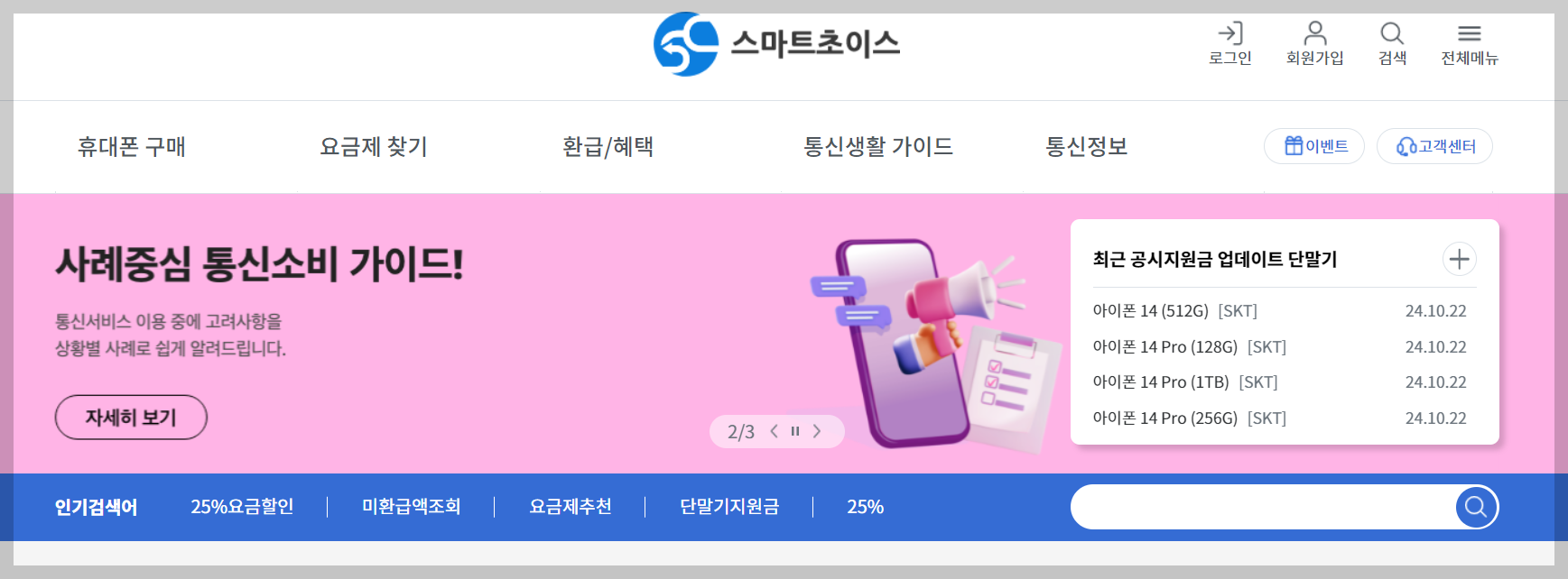 - 스마트초이스 웹사이트에 접속합니다.